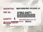 Front Door Weatherstrip (Left, Front) - Toyota (67862-04071)