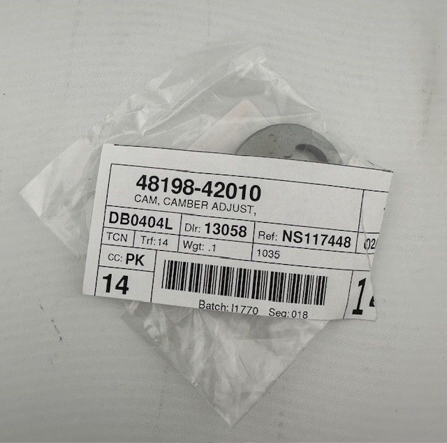 Ensure precise alignment of your vehicle's suspension system with this genuine Lower Arm Adjust Cam (48198-42010). Engineered to exact specifications, this replacement cam allows for fine adjustment of the lower control arm, optimizing wheel alignment for improved handling and tire wear.